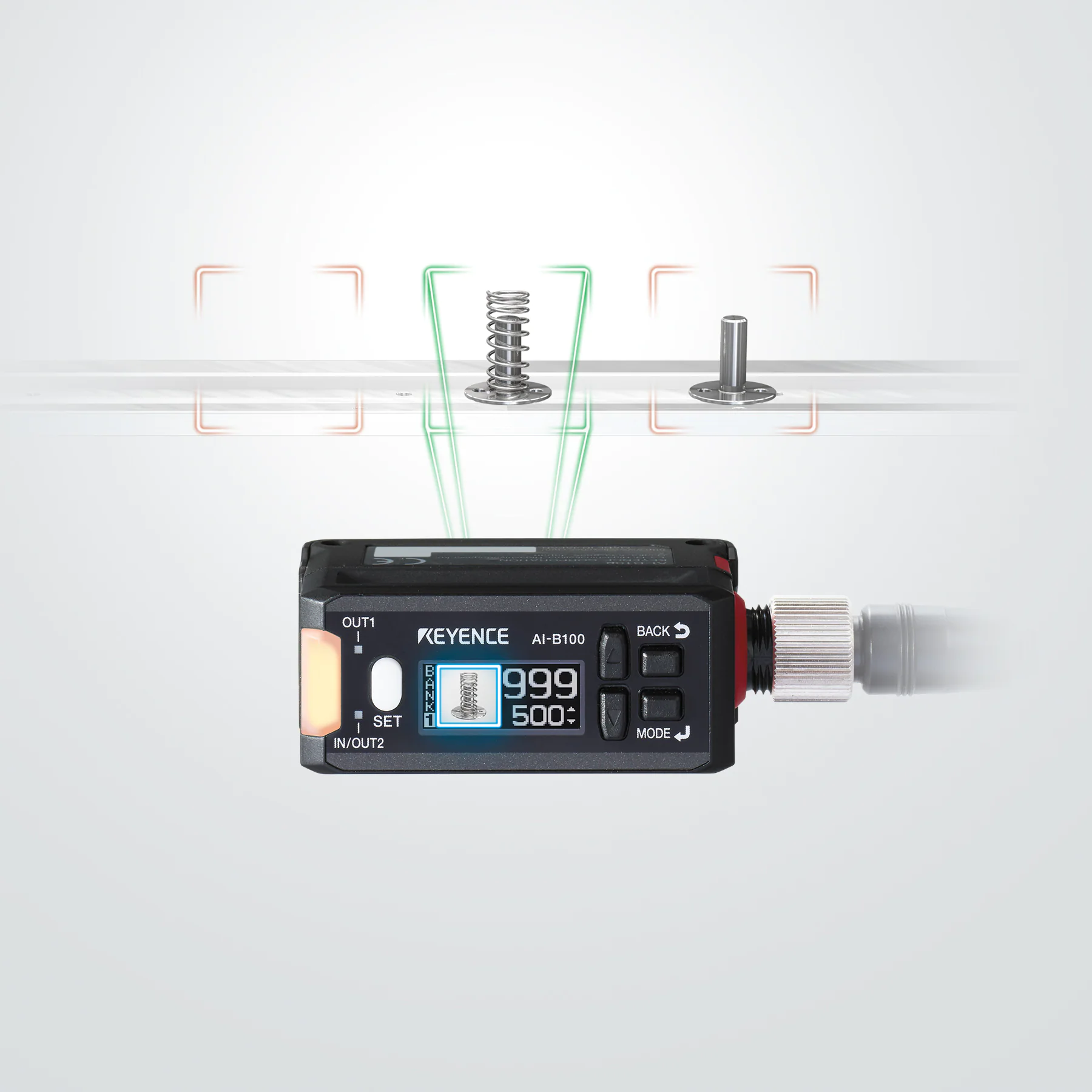 在AI系列中,安装和调试非常简单。由于AI系列具有探测区域的能力,因此无需担心安装在合适的位置。这意味着花在设计解决方案上的时间更少。与传统的KEYENCE传感器类似,AI系列还采用了双触控调节。此外,用户可以从传感器上看到当前的实时视图,大大减少了安装和配置所需的时间和精力。
