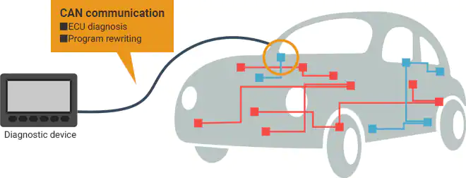 今天的汽车通过可以通过CAN通信来实现携带局的网络,以实现ECU到整个车辆内的ECU通信。使用此数据的故障诊断方法称为“诊断通信”。尽管有各种方式来指代这种类型的通信,例如“诊断数据通信”和“故障诊断通信”),但是在本节中使用术语“诊断通信”。