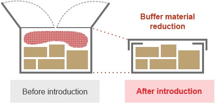 在过去,需要为每个产品尺寸准备包装盒,并使用缓冲材料来填补多余的空间。随着自动化包装设备的安装,包装箱内的空间可以更有效地利用。因此,缓冲材料的数量可以减少。此外,整合使用的新型包装盒有助于减少资源和空间。