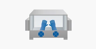 工人必须使用此盒子,该盒子可提供气流摄入量和排气,以减少对化学物质的接触。