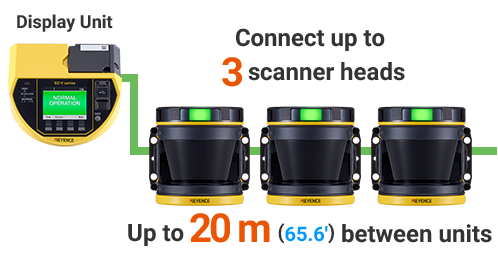 级联功能连接多达3个扫描器头到一个显示单元