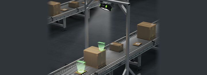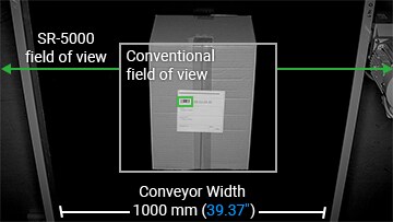 Due to its large depth of field lens, the SR-5000 Series can handle packages of any size or shape thrown at it. Tall, short, long, flat, or misaligned packages are all read just the same. The fields of view given from just one SR-5000 easily quintuples the amount of reading area provided from conventional barcode readers.