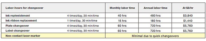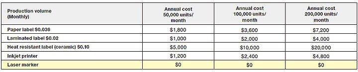 随着产量的增加,色带成本增加到惊人的数额。这是一个领域激光标记能显著降低成本。