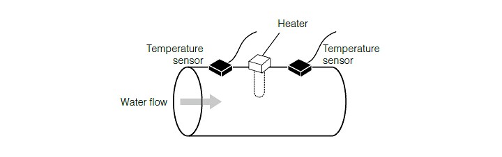 将加热器安装在流体中,并在2点上游测量流体温度。对加热器进行控制,以不断保持这2分之间的固定温度差。基于维持此温度所需的功率量确定流量。