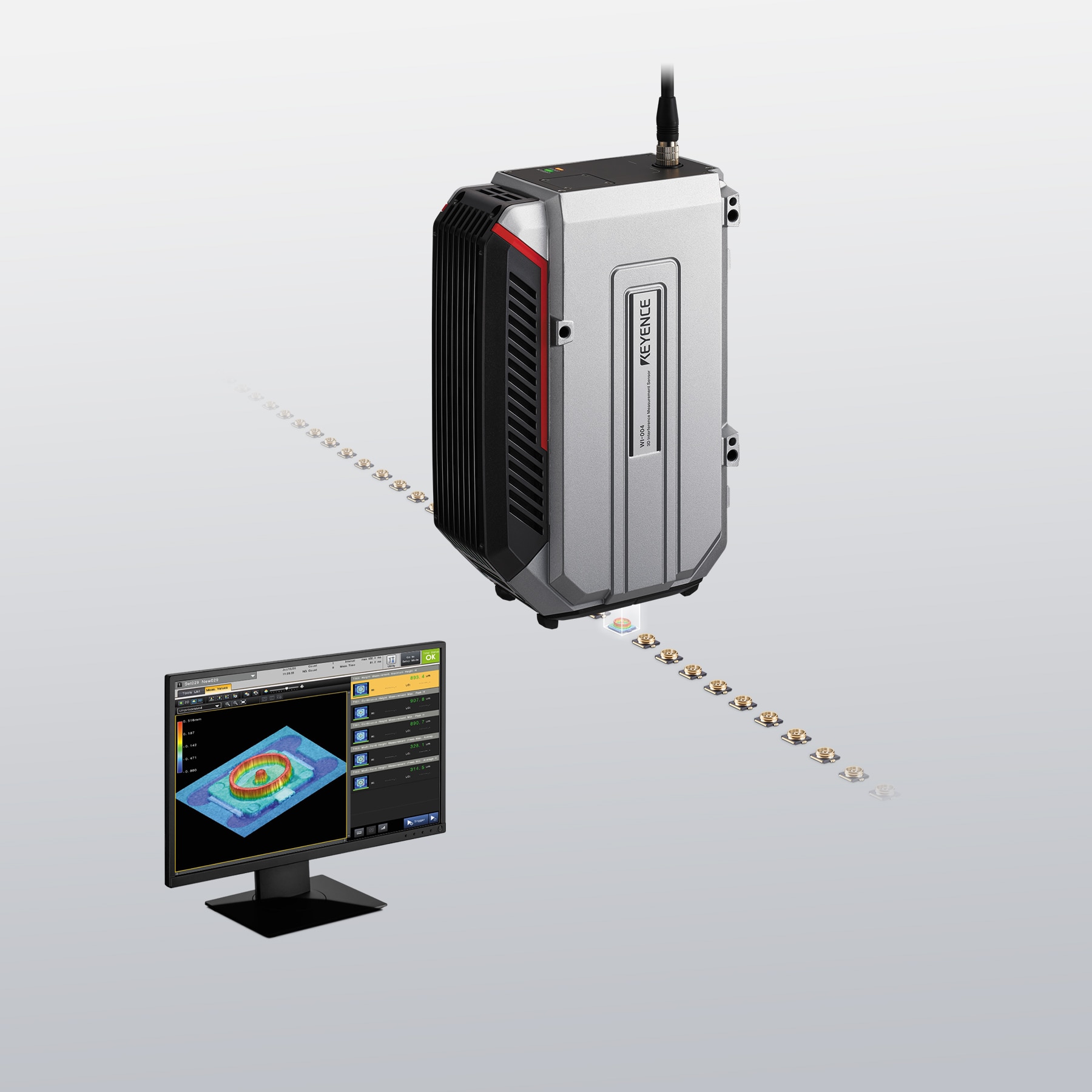 为了实现多点测量,传感器必须对目标进行快速、准确的扫描。这样做需要移动工作台,这使得检查非常耗时。使用WI-5000系列,可以在一个表面上进行测量,大大减少了测量时间,并实现了100%的检测。