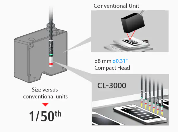 紧凑的传感器头,包括工业上最小的约8毫米ø0.31”,几乎可以在任何地方进行测量。利用以前不可能的安装位置、平行安装和其他一度无法实现的好处。