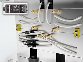 FD-X系列夹紧式微流量传感器可以很容易地从管道外安装,检测流速低至0.1 mL/min(和注射量低至0.001 mL)。设备不与液体接触,避免了压力损失和堵塞等问题。非接触式设计也意味着该设备不受液体特性(如粘度)的影响。FD-X系列甚至可以用于润滑脂、粘合剂、助焊剂、密封剂、化学品和其他液体的涂层/填充应用。该设计还防止了压力下降,使流量测量不影响设备条件,如喷射和喷涂功能。此外,这种夹紧技术意味着不需要管道切割或修改。