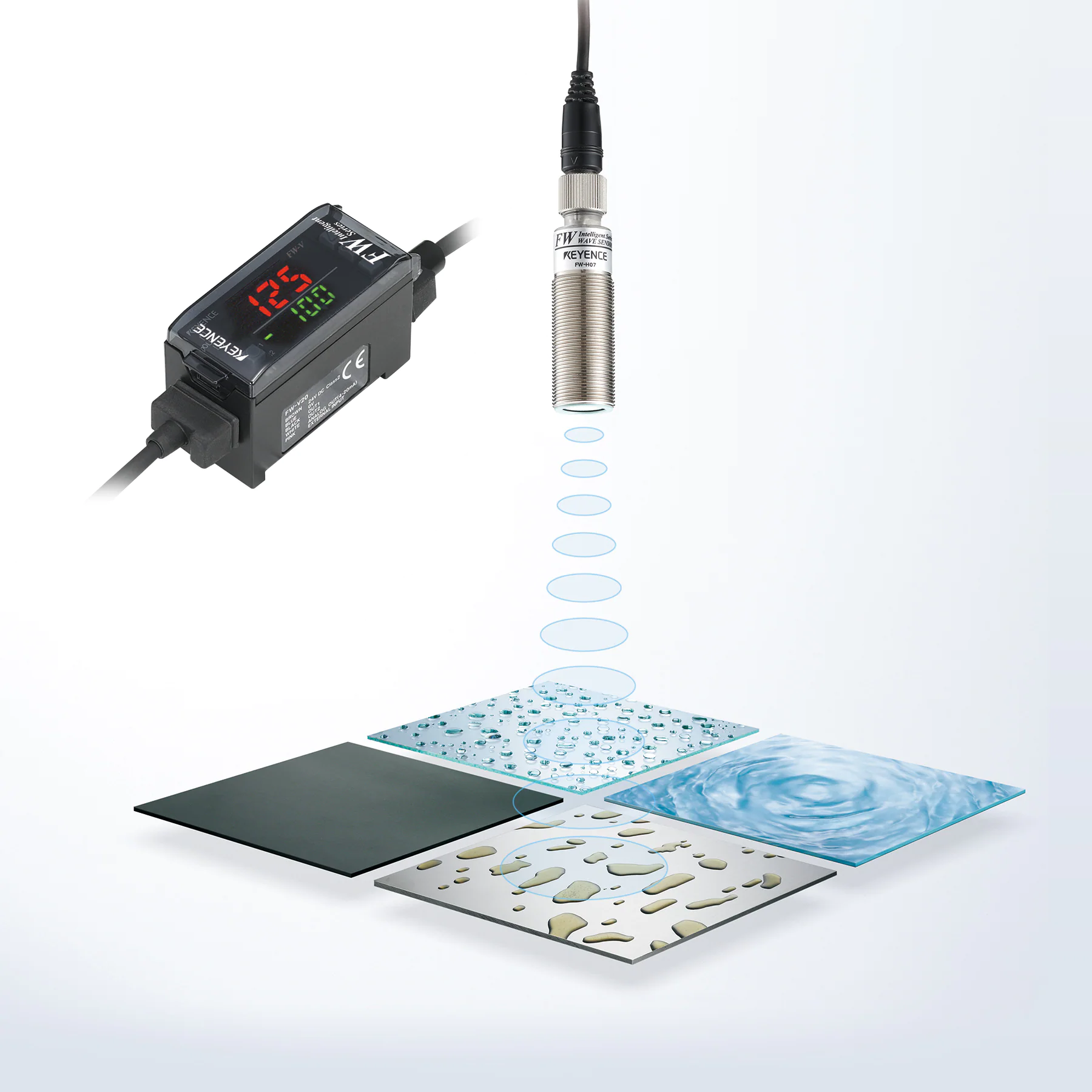 FW系列能够很容易地检测到金属、玻璃、液位或其他用反射式光电传感器很难检测到的目标。而且,检测不受目标表面的颜色、图案或光泽的影响。