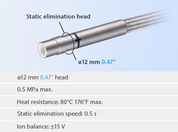 由于SJ-M系列提供了一个直接的静电消除结构,将离子产生点指向头部的尖端,它允许在最需要的地方进行高速和高精度的静电消除。