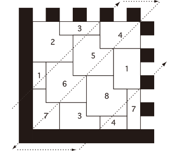 当一个代码有超过26 x 26个模块(超过24 x 24个数据模块)时,它被分成块,如下所示,每边不超过24个模块。这种结构可以防止代码失真。