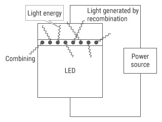 其结构与二极管非常相似。唯一的区别是使用GaAs作为宿主,能量以光的形式而不是热,并将二极管变成LED(发光二极管)。 |