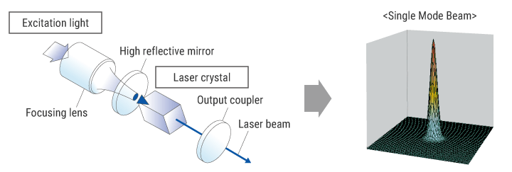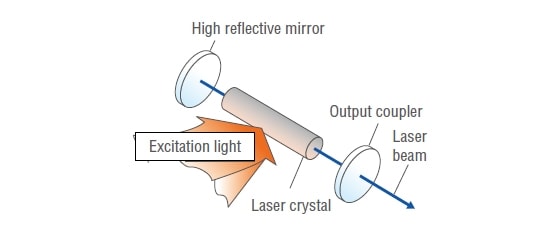 | 端泵 | 一种方法,其中激发光从激光介质的后部照射并通电。由于晶体中心被激发,激发效率好,从而产生高质量的激光束。 |