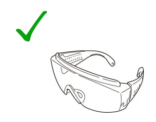 操作人员在使用激光设备时必须佩戴专用的护目镜来保护眼睛。