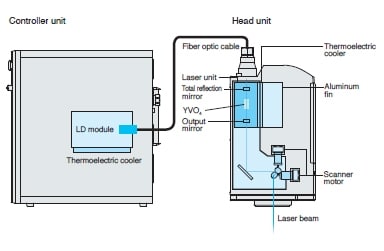 - 激发光从LD模块通过光纤电缆发送到激光单元。