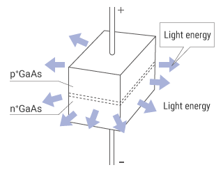 半导体激光器的结构与二极管激光器的结构非常相似。唯一的区别是使用GaAs作为宿主,其中能量以光的形式而不是热的形式,并将二极管变成LED(发光二极管)。