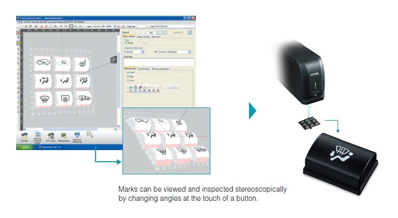 是的,KEYENCE激光标记器是基于控制器的系统,无需PC即可操作。当很难使用PC进行现场操作或激光打标机不经常编程时,可以使用触摸面板或外部监视器来控制激光打标机。