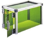 Protective covers for CO2lasers (30 Watt class lasers) are generally made of acrylic or polycarbonate, and protective covers for fiber and YVO4lasers are commonly made of sheet metal. Since completely surrounding a laser in sheet metal prevents the operator from seeing inside the housing, some protective covers have a view window covered with a special protective film.