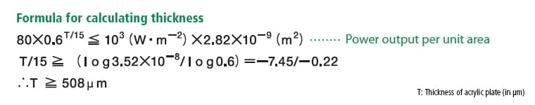 In theory, an acrylic plate thickness of 508 μm attenuates a CO2laser to the Class 1 level, but a thickness of at least 5 mm is recommended to ensure adequate durability and material workability.
