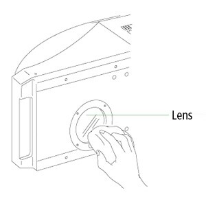 Never wipe the lens with a dry cloth. This may scratch it or remove the protective coating.
