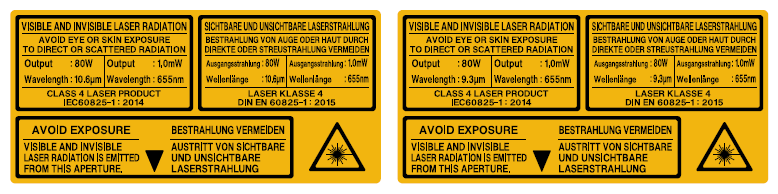 The following is an example of the warning labels for the ML-Z Series CO2laser marker.