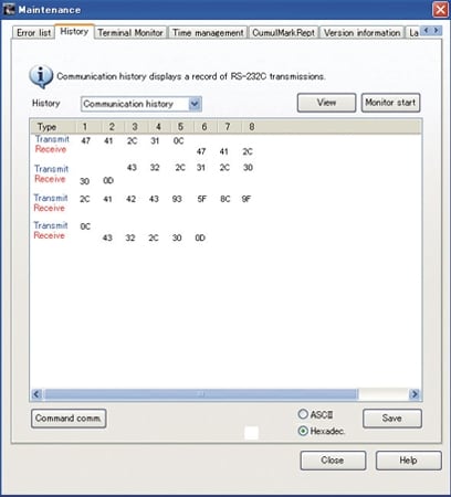 KEYENCE's laser markers have an extremely useful function designed to help troubleshoot communication issues. Each laser automatically stores its communication history, which allows users to record the exchanged communication commands in a text file format. The file can then be emailed to KEYENCE in order to quickly determine the cause.