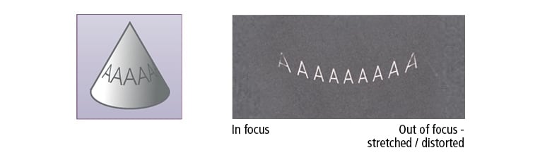 激光标记器通常在目标在其光束焦点处时产生最佳标记。目标离焦点越远,激光光斑的焦点就越小。最终,由于光斑的放大和能量密度的降低,斑纹变暗。