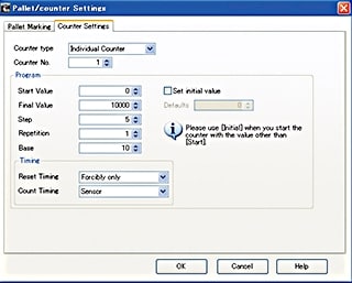 内部计数器可以响应各种情况,因为它可以改变步骤数,重复和基计数器值。也可以重置计数器或直接从激光标记的离散I/O终端计数。