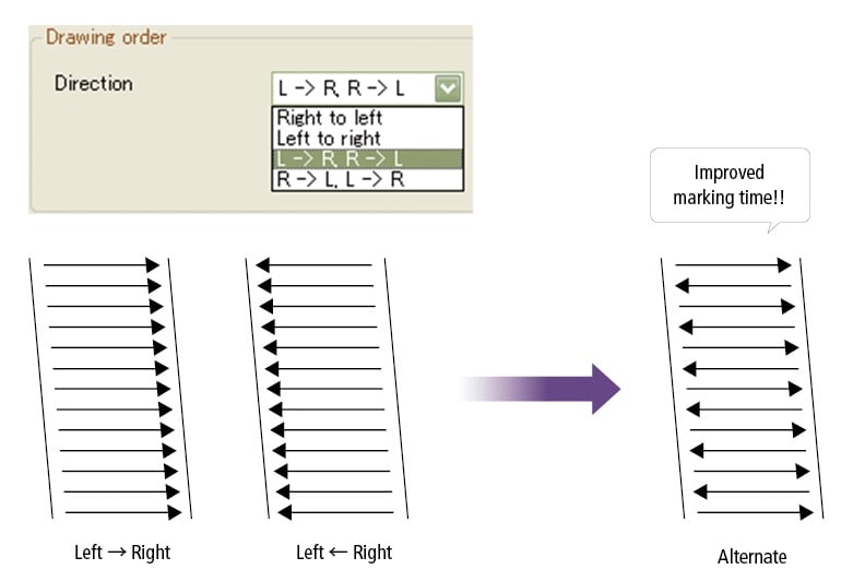 在某些情况下,可以简单地增加激光的扫描速度,以减少打标时间。然而,这可能会导致糟糕的评分质量。在这些情况下,改变填充方向可以有效地减少标记时间。