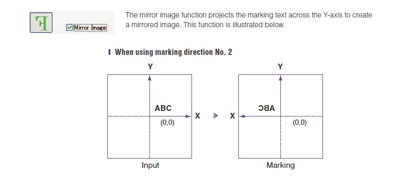 KEYENCE的标记生成器软件配备了“镜像镜像”功能。要启用此功能,只需选中选项框。