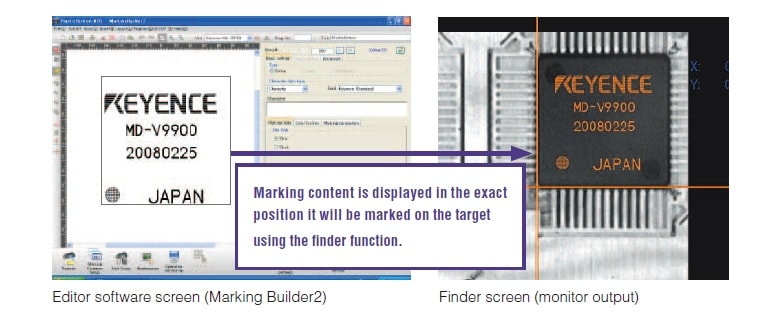 一些KEYENCE激光笔包含内置摄像头,可以在显示器上显示标记区域。这个查找功能可以让用户快速准确地定位零件,即使是在非常小的目标上。产生的废料少,初始规划简化。