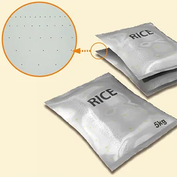 激光标记器可以在不使用刀片的情况下在袋子上制造气孔。例如,激光可以用来让空气从米袋的内部逸出,以防止袋子在堆放时爆裂。