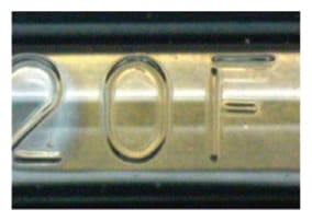 标记是通过在玻璃上产生微小的裂缝来实现的。低功率重复标记,标记更清晰。
