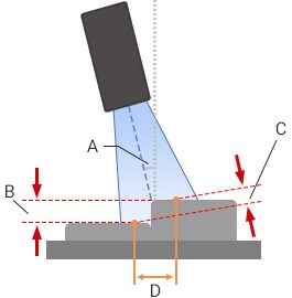 此外,如果目标是一个透明物体,稳定测量的关键点是让透明物体至少与某个值一样厚。如果物体很薄,由于从透明物体背面反射的光的影响,前表面高度的测量值可能会低于应有的值。