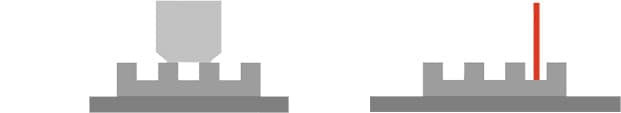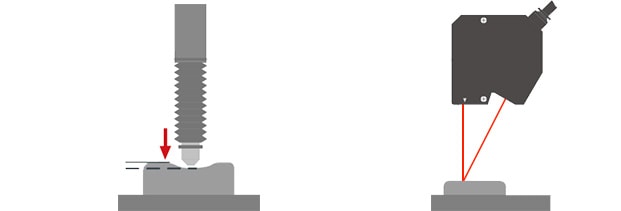使用非接触式激光位移传感器,测量光斑(大小从几微米到几百微米不等)通常比接触式测量中使用的探头小。这使得用非接触式方法精确测量更窄压痕的底座高度成为可能。