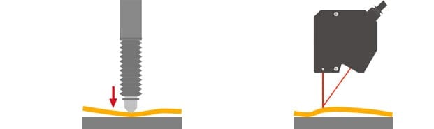 接触测量时,探头向下压在目标表面,消除了目标漂浮在空中引起的误差。因此,接触法比非接触法更适合这种类型的测量。