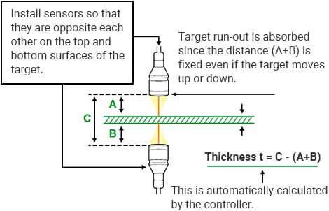 厚度测量通过两个传感器之间的目标。