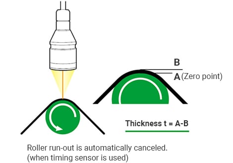 厚度测量的高度差时,目标是缠绕(即。密切接触,在反对)辊的辊表面作为零点。