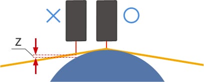 如图,如果光轴偏差从辊的峰值位置,测量误差(Z)的差距。