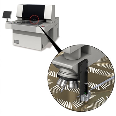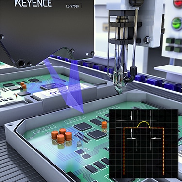 检查基片翘曲不停止线使用二维激光轮廓仪。LJ-X系列可以检查载体和基板之间的间隙,而不需要停下来并使用1D传感器扫描部件,这减少了检查时间。