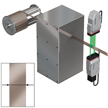 通过监测宽度来检测扁线的缺陷。由于LS-9000的高速采样,即使是很小的边缘破损也能被检测到。