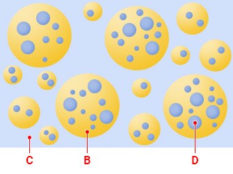 近年来,合成技术已经被用于制备双乳状液(也称为乳状液的乳状液或多乳状液),如W/O/W和O/W/O乳状液,这将在后面解释。具有与双乳内部水相相同大小的细乳液滴的微乳也受到了关注。用于合成和控制由不结合物质制成的各种乳剂的技术应用于许多领域,包括化妆品、食品和制药。在化妆品行业,乳液技术用于皮肤的保湿面霜和血清,以控制皮肤的亲和力、外观和质地。在食品方面,研究人员正在将这种技术应用于控制风味和卡路里。在医疗行业中,针对将乳剂用于药物传递系统(DDS)的研究非常活跃,它通过乳剂作为药物载体,精确地控制药物在体内的运动,从而将药物传递到目标位置。
