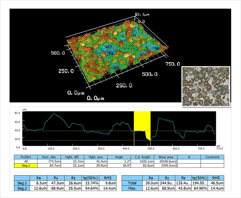 通过观察粗糙度来量化磨石质量- Ra(算术平均粗糙度)/ Rz (Max。高度)