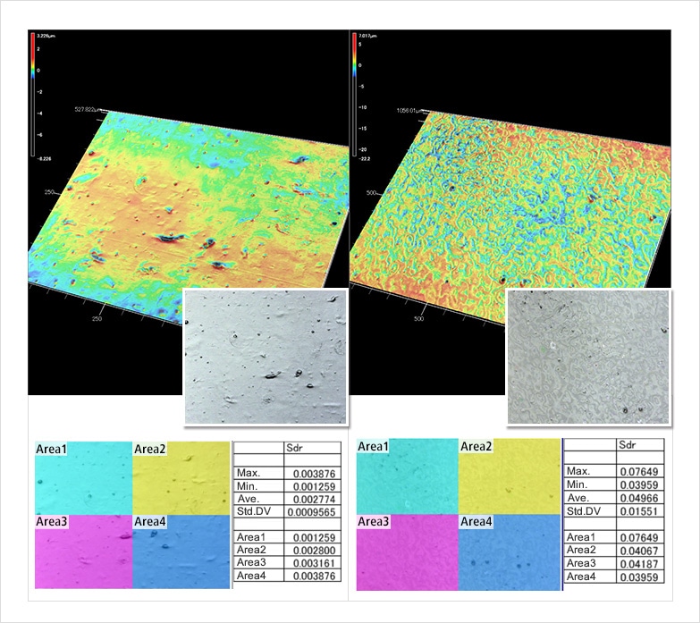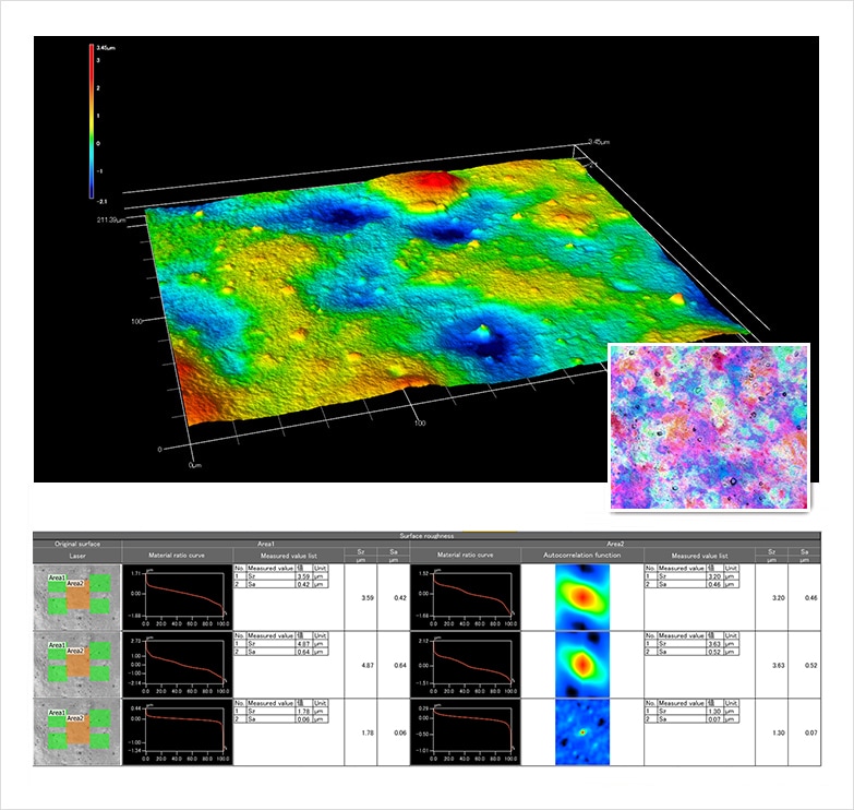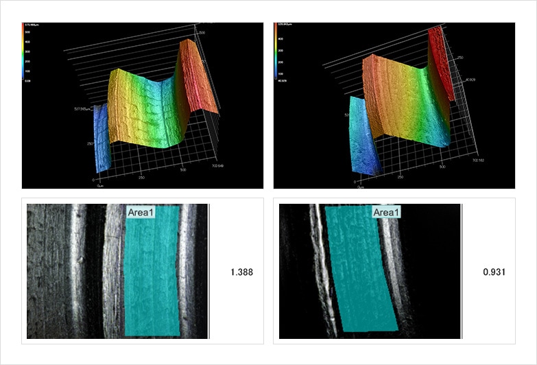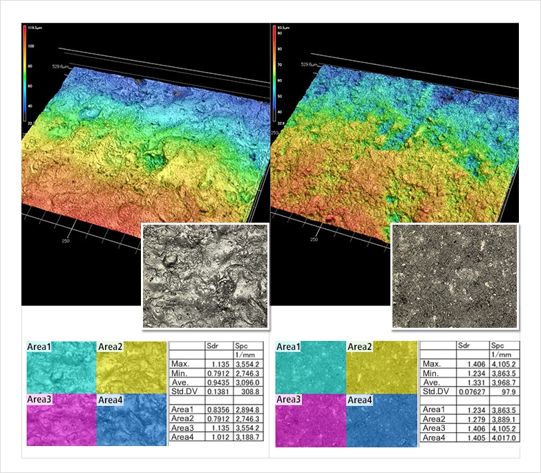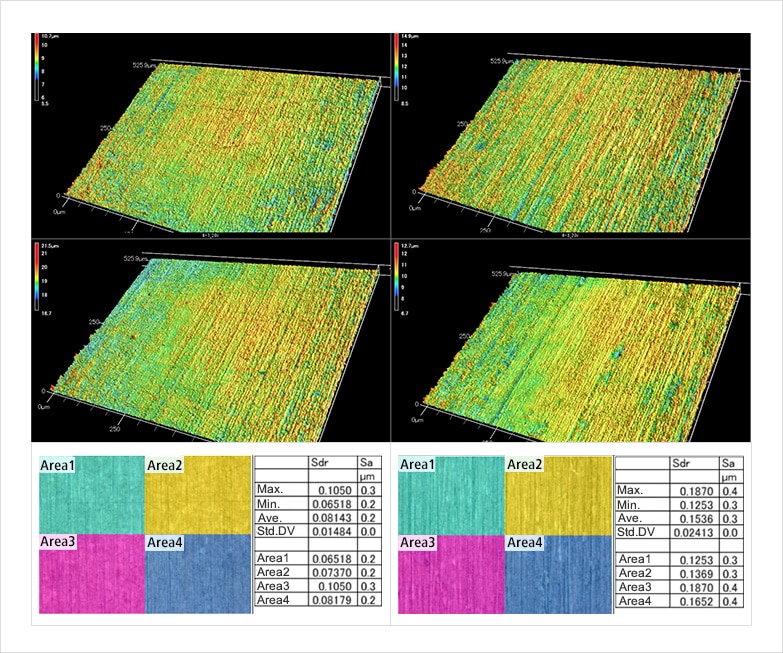 该分析比较了不同处理方法引起的表面性质的变化。Sa和Sz分析检查加工条件,Str分析检查是否能在外观上找到加工痕迹。
