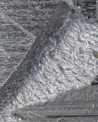 作为一种微观特征,通常观察到一种称为条纹的条纹图案。这种条纹图案垂直于裂纹的方向,据说容易发生在铝合金和铜合金上,而不容易发生在黑色合金上。