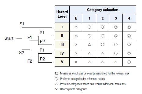 ISO 13849-1: 1999 specified the determination method of category and its requirements.