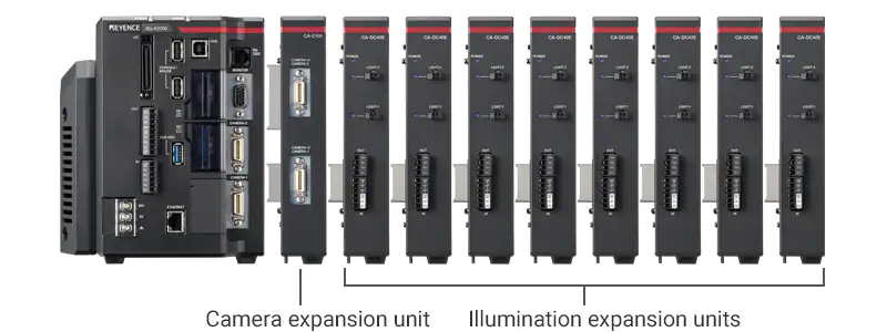 LED灯控制器可以直接连接到兼容的视觉系统与少量的电线。该控制器可以通过图像捕获触发器输入实现直接照明控制和频闪,而不需要PLC。最多8个轻型扩展单元*可以连接到一个单一的视觉系统,允许多达16个灯的控制轻松。