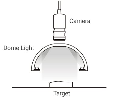 由于安装在圆顶上,圆顶光以各个角度辐射到各个角度的间接光。当使用标准照明时,从部件的直接反射会导致热点(光晕),导致检查和可靠性问题。当圆顶光在所有角度扩散时,具有复杂形状的靶可以均匀地点亮,消除热点并增加检查稳定性。