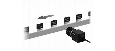 Inspect the characters marked on transistors. The processing speed of conventional machine vision was so slow that the line speed had to be adjusted to the inspection speed.