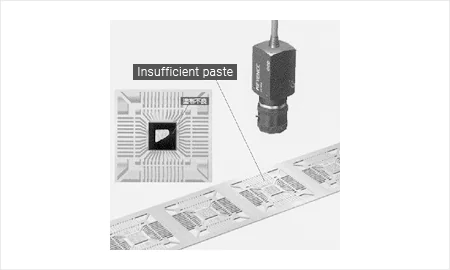 Judge defective paste application or soldering on lead frames. With conventional methods, the judgment of paste or solder was unstable on copper frames.