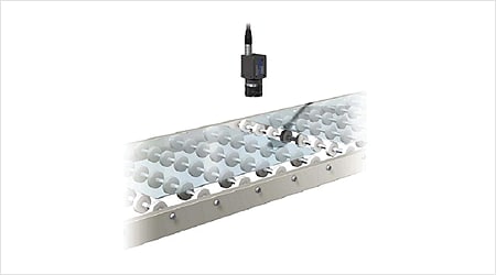 为了在广阔的视场上执行检查,例如检查托盘上目标的存在/方向,您必须划分检查范围并使用多个区域摄像机单独捕获图像。这增加了工作量和成本。